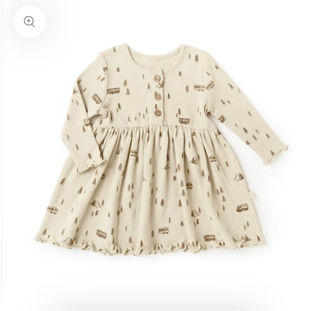 Crafted with the utmost care and softness, this dress combines comfort and elegance effortlessly. Watch her twirl with joy in this charming outfit, perfect for any occasion. The buttoned neckline and delicate hem detail adds a touch of practicality to the dress's adorable design.