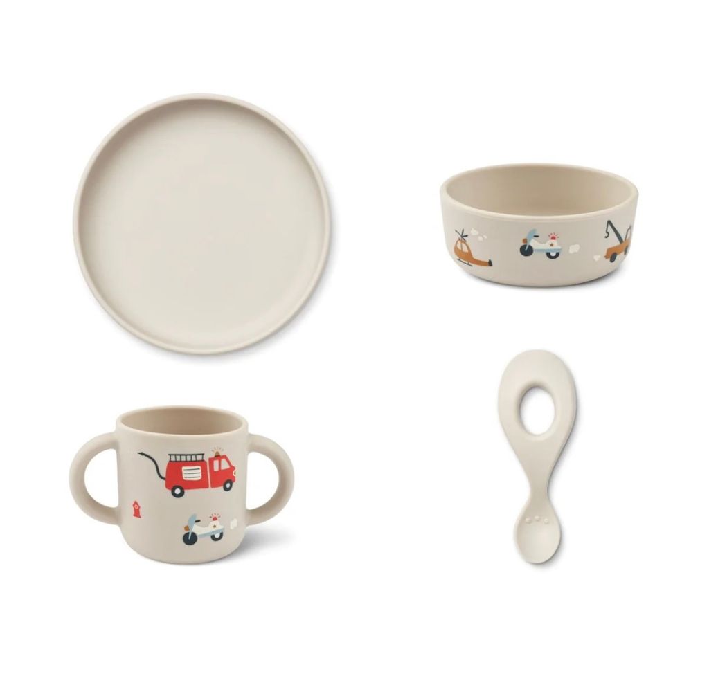 Vivi silicone tableware set 4 pack- Emergency vehicle/ sandy