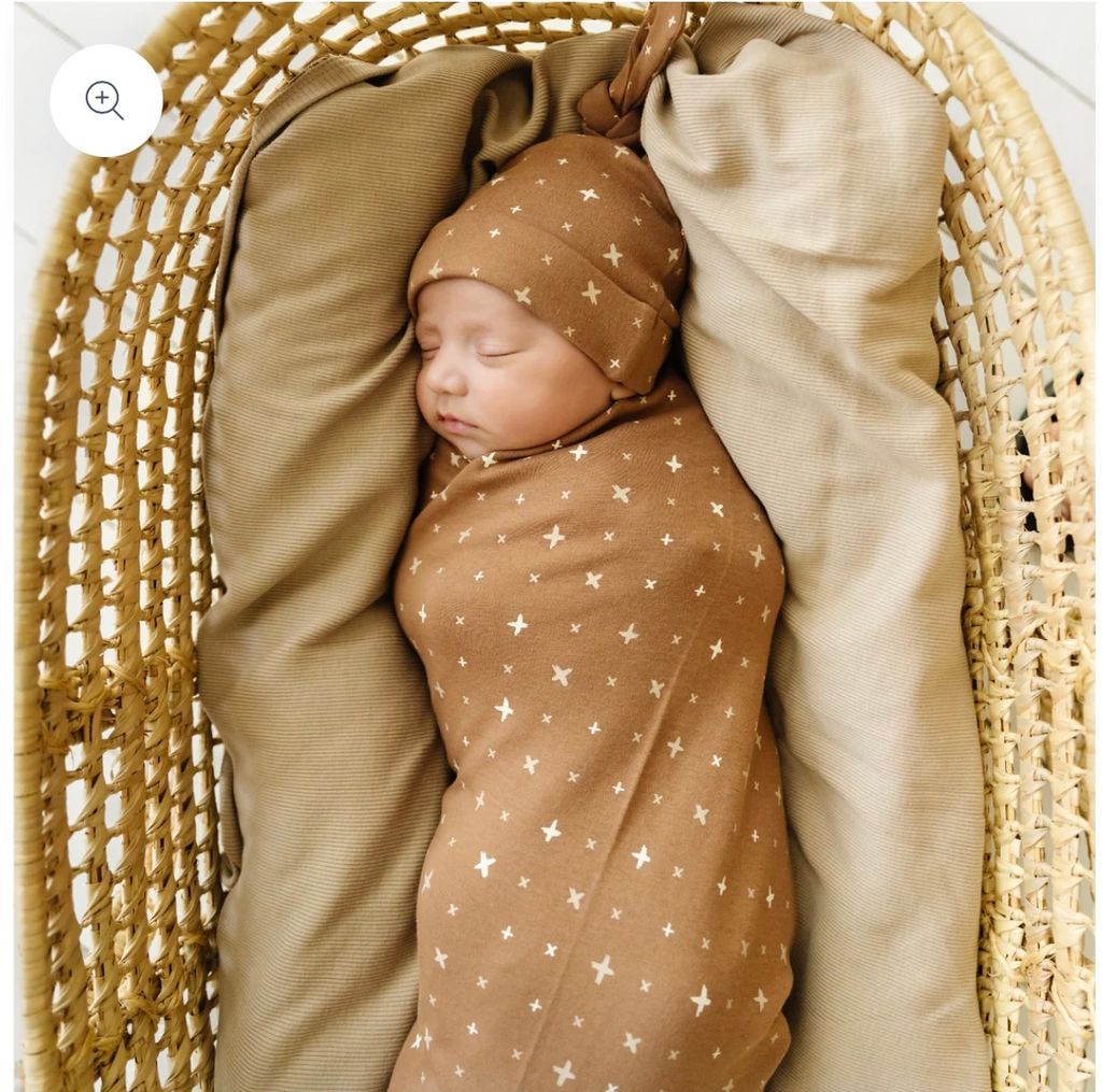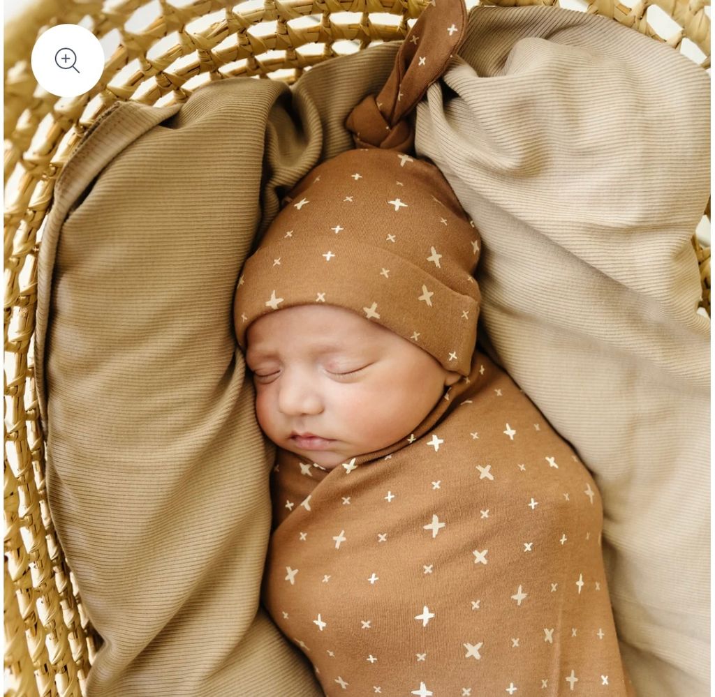Enjoy your little one's home coming with this 2 piece set, complete with stretchy swaddling blanket and matching knotted hat. Experience the ultimate comfort of our butter soft organic cotton. Lightweight cotton knit is incredibly luxurious, breathable and has a wonderful drape to it. Take everywhere you go and use as a playtime blanket, stroller cover and more.
